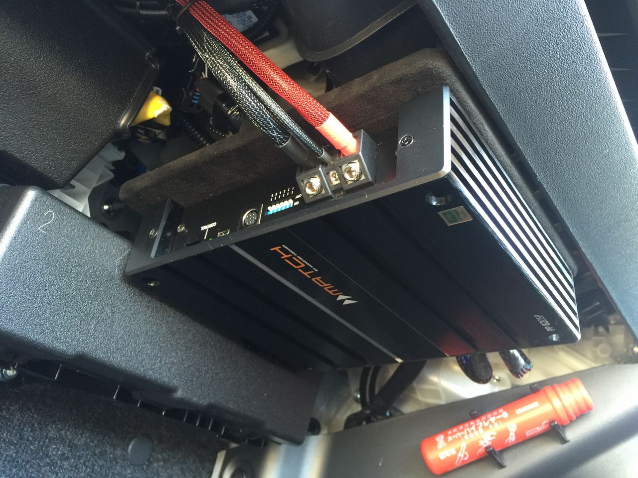 スペースがなく制約の多い車だけに、アンプ設置も苦労しました。
