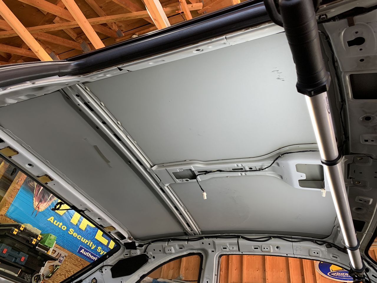 GTRは元々、ルーフ内は1枚、綿のような物が気持ち入っているのみの粗末な感じです。